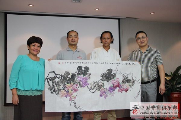 太原乾元菩明轩书画培训基地首席国学讲师王晓并现场执笔画出《葡萄丰收》祝贺中国晋商俱乐部和山西商人网,祈福晋商商帮再创辉煌。