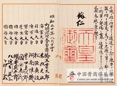 1945年8月14日,日本天皇颁布《终战诏书》,宣布无条件投降。