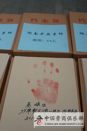 仪式现场,主办方将1207枚湖南抗战老兵手印捐赠给建川博物馆。馆主樊建川(四川省山西商会会长、中国晋商俱乐部荣誉顾问)表示,会尽快将这些手印腐刻于手印碑林广场,令这些抗战烽火中力挽狂澜的英雄之手青史永存。