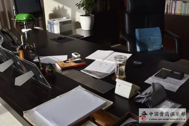 办公桌上的台灯、文件、纸笔等可以看出他还保留着比较传统的办公习惯。
