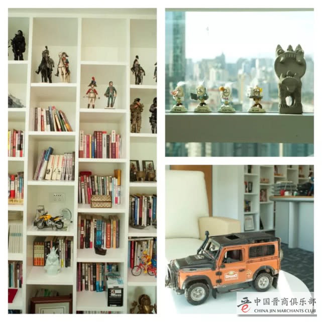 整体看来轻松活泼,有很强的个人色彩,热衷玩具收藏:越野车模型、摩托车模型、书架上和窗台上摆放着许多手办,办公桌上还有美国队长。