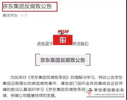 昨天(8月23日)京东集团在“廉洁京东”微信公众号上发布了《京东集团反腐通知》: