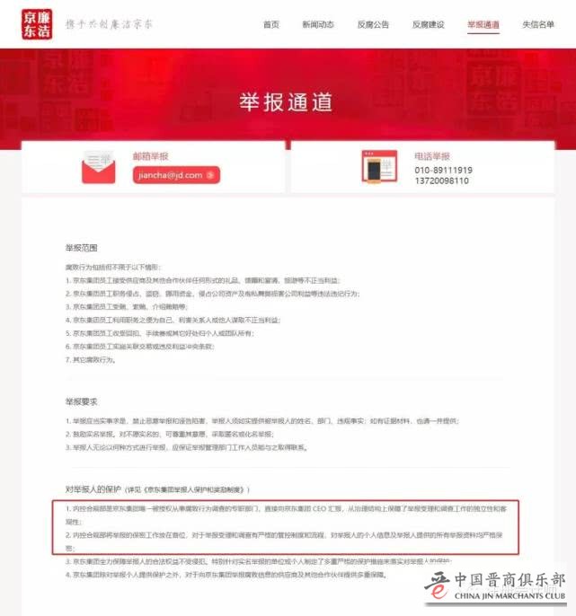1.内控合规部是京东集团唯一被授权从事腐败行为调查的专职部门,直接向京东集团CEO汇报,从治理结构上保障了举报受理和调查工作的独立性和客观性;