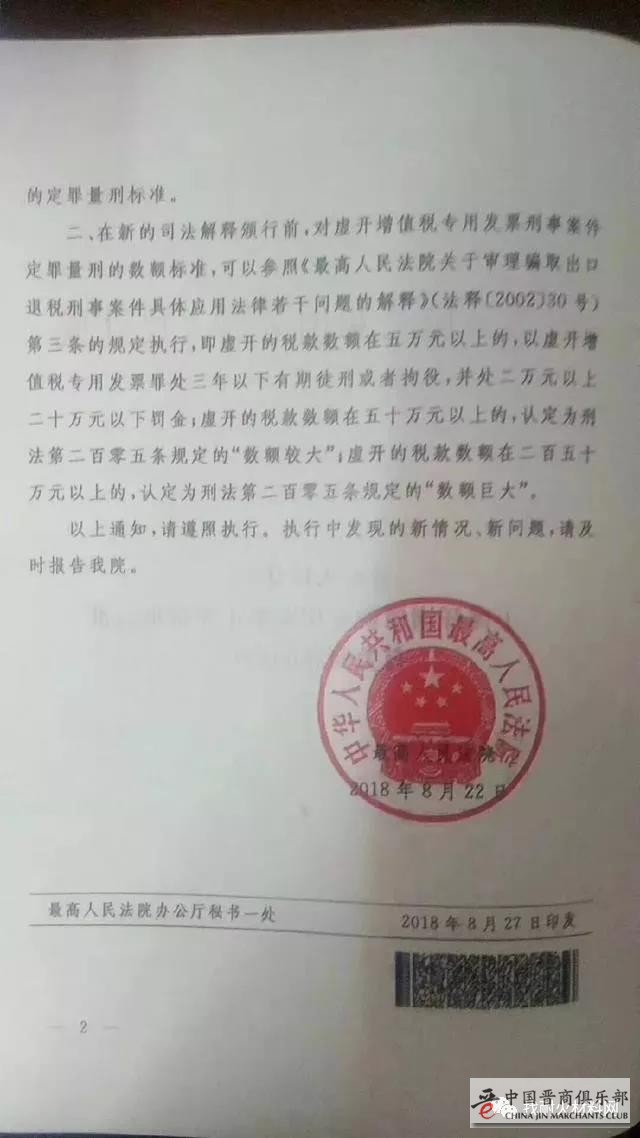 2018年8月22日 ,最高人民法院发布了关于虚开增值税专用发票定罪量刑标准有关问题的通知。(下文有文字版)