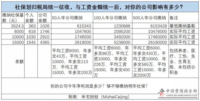 大家请把这个文章或表格转发给你朋友或你老板,你们今年公司的利润是多少?够不够缴纳明年多出的社保费用?