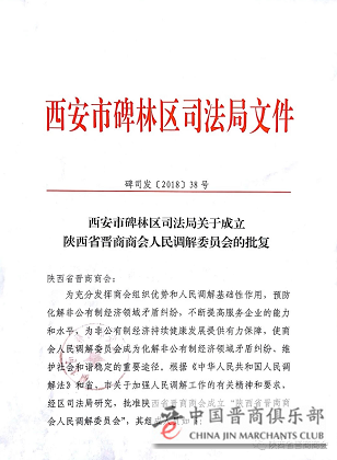 会议首先由碑林区司法局局长王秉宏宣读调委会成立批复,王局长表示陕西省晋商商会人民调解委员会的成立通过多次沟通及多方领导共同研究今天终于正式成立感到十分高兴,区司法局一定会在今后的调解工作中给予有力的支持和司法保障,为创建碑林区优良诚信的营商环境贡献力量。