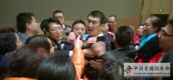据说,在太原的演讲现场,宋鸿兵当场向泛亚受害人道歉,并写下道歉声明。这样一场戏码中,人们既看到了一些学者的不堪,也看到了很多投资人低级的投资水平和素质。看着一个理财产品赚钱,听一段绘就蓝图的洗脑演讲,便失去了投资基本的理性,投资撒钱时谁也劝不住。可当投资失败的时候,便集结采用各种不理性的“维权手段”。很多投资人作为成年人,在只能接受赚钱而受不了投资亏损的过程中,似乎从不为自己的行为负责,当然也谈不上反思。图为宋鸿兵遭围攻现场。