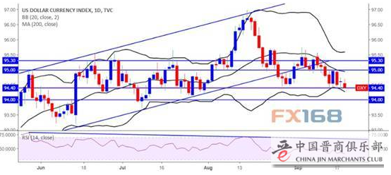 一旦有效下破94.40一线支撑,预计进一步走低将指向94.00以及7月低点93.70等水平。而若继续持稳反弹,则关注94.60/94.80等阻力水平。