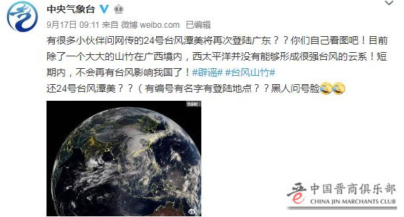 记者还注意到,9月17日上午11时许,深圳市气象局官方微博发布信息称:“24号台风潭美?开局全靠一张台风命名表,内容全靠编!如果有下一个台风,那它确实将会被命名为‘潭美’,但是从目前的数值预报来看,十天内没有任何一点点台风生成的迹象,更别说钦点登陆广东了。别天天想着搞大新闻。”