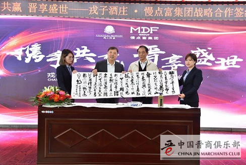 慢点富集团董事长朱福兵先生、戎子酒庄董事长张文泉先生与启动嘉宾一同完成了战略合作启动仪式,随后双方签署了战略合作协议。彼此将本着平等互利、合作共赢的原则,逐步深入展开项目投资、产品销售、企业上市等项目的战略合作。