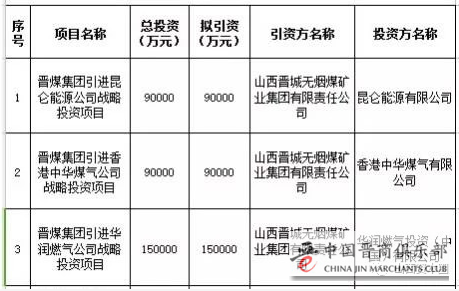 山西资本圈注意到,在刚刚结束的太原能博会重大项目签约仪式上,晋煤集团的三个战略投资项目格外引人注目,分别为引进昆仑能源公司战略投资项目、引进香港中华煤气公司战略投资项目、引进华润燃气公司战略投资项目,共计引资高达33亿元,仅华润燃气出资便高达15亿元。
