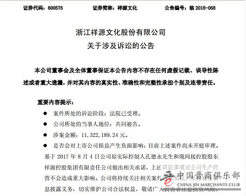 祥源文化官司缠身:诉讼440起涉案逾五千万!