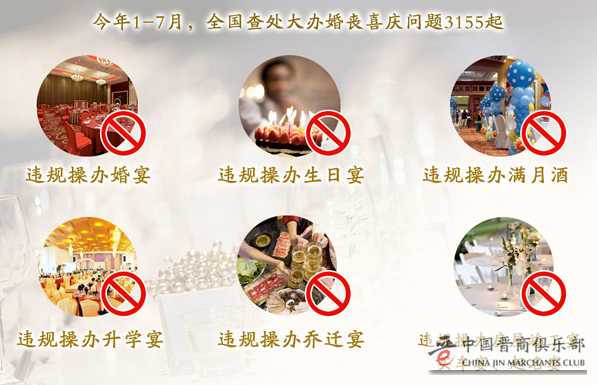 从查处通报的案例看,除了上述比较常见的5类宴席,一些党员干部还挖空心思,以各种明目违规操办宴席,如房屋竣工宴、买车宴、起名宴、剃毛头宴、留头宴、“戴耳环”礼等。