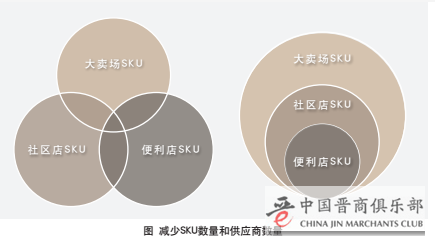 2012年,企业首先对商品品类进行了改革,以降低供应链复杂度,首先重新盘点了所运营的58000个SKU数,然后对门店经营SKU数进行统一整理,分出大卖场、社区店、便利店三个业态,每个业态统一经营SKU,并进行品类角色定义,对于不同地域门店要求差异化不超5%,并要求大卖场SKU要全覆盖社区店,社区店SKU要全覆盖便利店,通过对SKU数的重新梳理,总SKU数成功由58000个缩减到40000个以内,并且将重点SKU数控制在10000个左右。