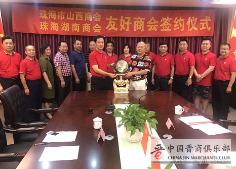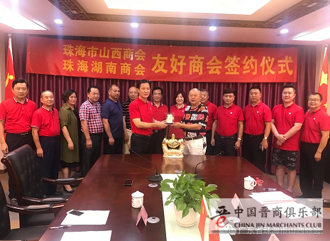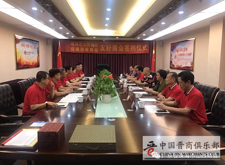 2018年9月27日,珠海市山西商会(中国晋商俱乐部联合发起机构)与珠海湖南商会缔结好友商会签约仪式在珠海市山西商会会议室隆重举行,珠海湖南商会会长刘里仁、名誉会长粟圣君、总顾问兼监事长樊迈群、常务副会长李白银、钟伟平、副会长樊仁杰、秘书长杨胜钟、副秘书长张宣扬,珠海市山西商会会长闫国军、驻会顾问李红梅、副会长张忠喜、王建平、王勇、理事马晶参加会议。会议由珠海市山西商会秘书长陈建军主持。