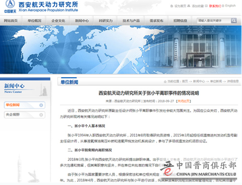 2018年9月17日,根据律师意见,西安航天动力研究所承办人向仲裁庭提交了《张小平参与我所型号研制情况》材料。承办人因急于达到让其回所脱密的目的,在材料中措辞失当,夸大了张小平在所参与研制项目中的地位和作用。该材料经张小平个人朋友圈发布后,扩散到网络上,引起了较高的关注度和一些误解、误读,产生了不良影响。今后,我们将加强内部管理,在工作中更加严格、严谨,避免此类事件再次发生。