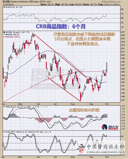 因此,尽管CRB商品指数在近期突破趋势线并刷新5月份高点,仍然不宜对其持有看涨观点。