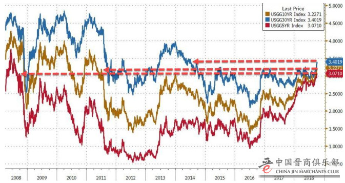 国庆假期期间,美国债市惊现震荡,其中10年期收益率刷新2011年5月以来最高,周五触及3.248%,上周累涨15个基点,单周涨幅2月以来最大。