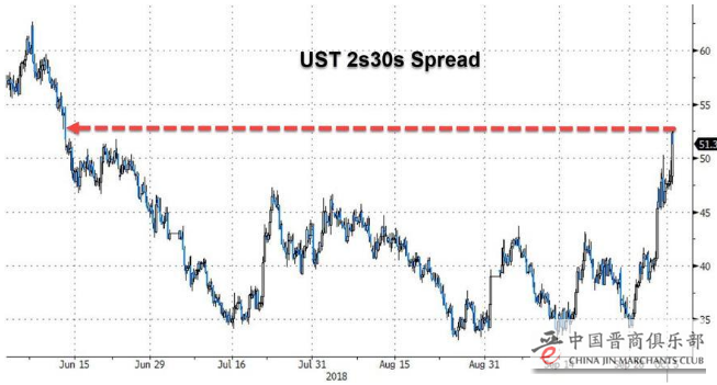 美债长短期利差也在进一步扩大,显示整体收益率曲线进一步上移。目前,30年期美债收益率与2年期美债收益率利差一度扩大至逾三个月高点。