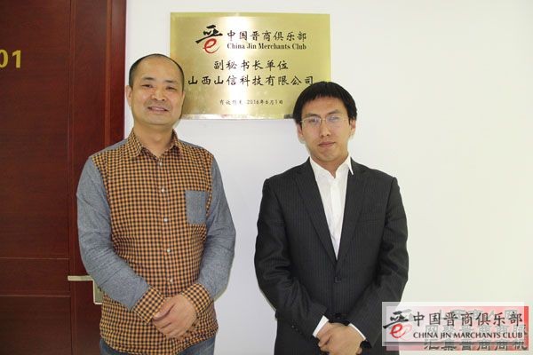 中国晋商俱乐部“副秘书长单位山西山信科技”正式挂牌,刘文斌与段晓辉合影留念