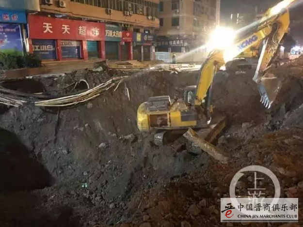 由于路面塌陷点周边房屋密集、地下环境复杂,塌陷深度最深达15.6米,加之塌陷点土体堆积堵塞涵洞,形成堰塞体,持续降雨,涵洞积水7万余方,面临发生次生灾害危险,整个救援工作难度巨大。