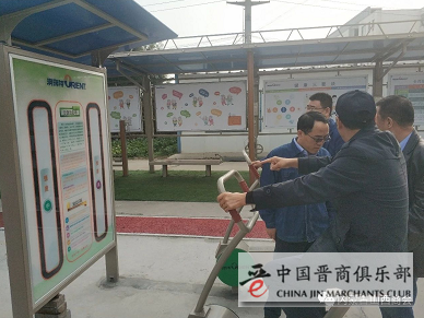 ▲公司总经理郝虎山向大家介绍智能健身器材使用方法