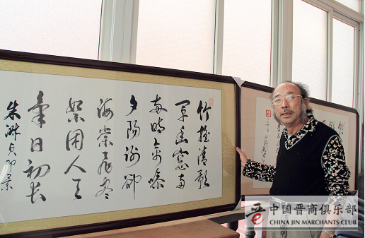 陈德良回到东庄镇,做起了乡绅,莆田系和他一起在民营医院业界逐渐淡出。图为陈德良和他的书法。摄影:严凯