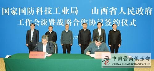 12月17日,山西省与国家国防科技工业局在北京举行工作会谈,签署战略合作协议。省委书记王儒林、省长李小鹏与工信部副部长、国家国防科技工业局局长许达哲进行工作会谈,并参加签约仪式。省委常委、秘书长王伟中,省委常委、副省长付建华,国家国防科工局副局长张克俭、徐占斌,总工程师龙红山参加会谈和签约。