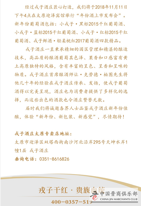 戎子酒庄新年份葡萄酒即将发布!--临汾晋商