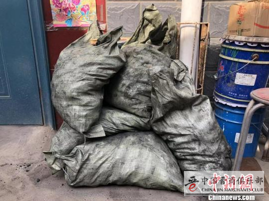 社区17日凌晨给每户发放了5袋煤。 李庭耀 摄