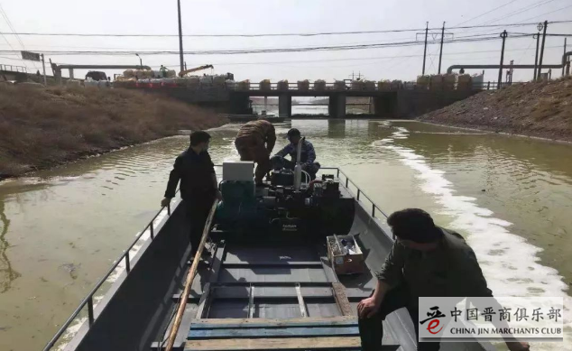 ▲当地人员正在围滩河上撒药治污。 图片来源:中央生态环境保护督察组