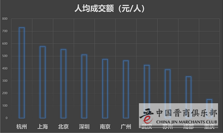 上海、北京的双11总成交额遥遥领先,到了百亿俱乐部,但人均成交额却低于杭州,深圳2017年人均GDP全国第一,但双11人均成交额仅排第4。