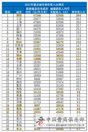 人才净流入前十的城市,除深圳外,房价收入比都比较靠后