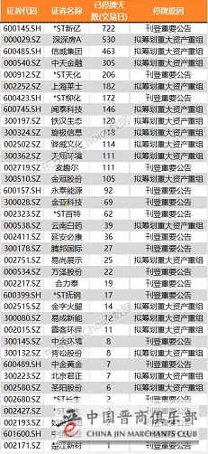 数据来看,自6日晚间停复牌新规发布后,截至到20日,两市共有35家公司复牌,其中复牌前停牌交易天数超过90天的有11家,有10家公司在这期间停牌。