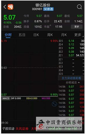 复牌后,银亿股份毫无悬念的一字跌停,截至当天下午收盘,报5.07元/股,跌幅为9.95%,成交1.14亿元。
