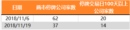 东方财富Choice数据显示,截至到20日,两市停牌数量为37家,停牌交易日在100天以上的有14家,而在11月6日(停复牌新规发布当天),两市停牌公司有62家,停牌交易日在100天以上的有20家,可以看到,停牌公司家数和长时间停牌公司数量均有一定程度的下降。