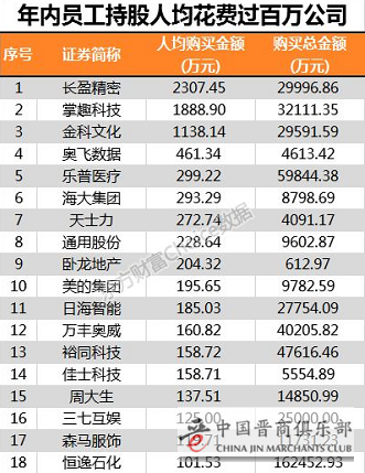 像长盈精密,其在年初发布员工持股计划,购买总金额近3个亿,除了预留份额,其余均由7为董高监和其他5位核心管理人员认购。掌趣科技和金科文化同样由董高监以及极少数的公司员工参与认购。而恒逸石化虽然购买总额超过16亿,但是有不超过1600人参与认购,所以人均购买金额则刚破百万。