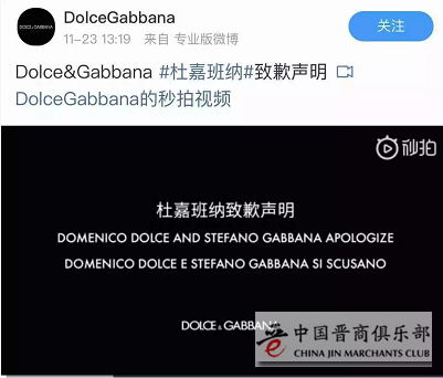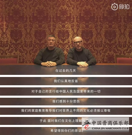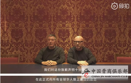 11月23日,在创始人兼设计师Stefano Gabbana涉嫌辱华、大秀取消后,DG(杜嘉班纳)两位创始人Domenico Dolce和Stefano Gabbana拍摄视频道歉,道歉视频中两位创始人表示: