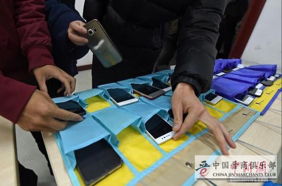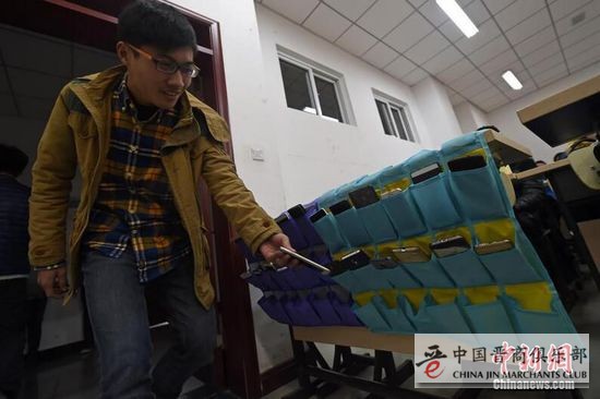 山西太原理工大学教室内,上课学生将各自的手机放入前排的收纳袋中,集中精力听课学习。据该校老师介绍,“无手机课堂”旨在倡导同学们提高在课堂上的学习效率,减少对手机的依赖程度,养成合理使用手机的好习惯。