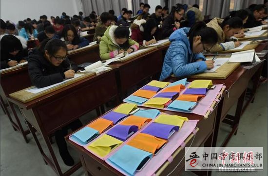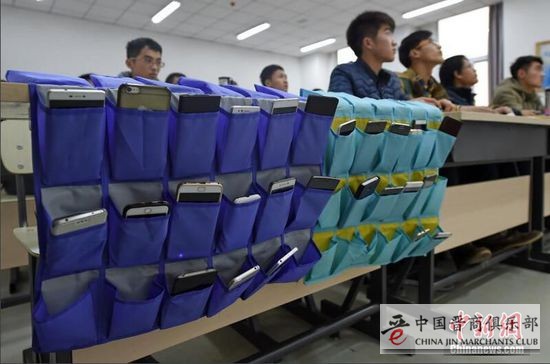 山西太原理工大学教室内,上课学生将各自的手机放入前排的收纳袋中,集中精力听课学习。