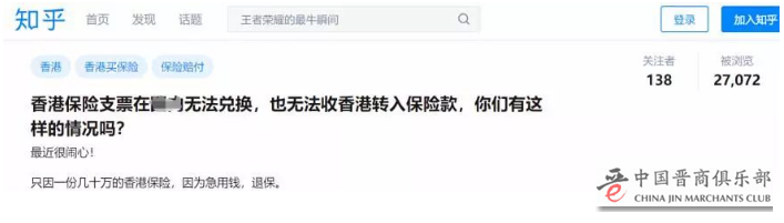 近日,知乎上一个名为《香港保险支票在内地无法兑换,也无法收香港转入保险款,你们有这样的情况吗?》的帖子火了。