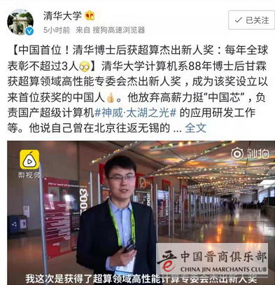 中国首位!清华博士后获超算杰出新人奖
