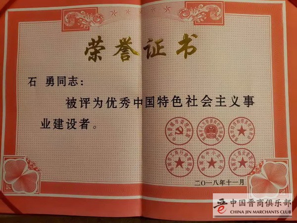 中国晋商俱乐部副理事长、山西晋源通能源科技有限公司董事长石勇先生受到了表彰。