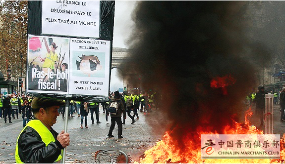 据媒体近日报道,12月1日法国巴黎爆发了13.6万人的暴力示威活动。其中一些身穿黄背心的极端分子,还通过摆设路障,烧毁汽车,砸毁物品,抢劫商铺的方式表达对政府加征燃油税的不满。此外他们还在巴黎标志性建筑物“凯旋门”外写上“推翻资产阶级”和“马克龙应该下台”等口号跟警察对峙。