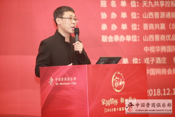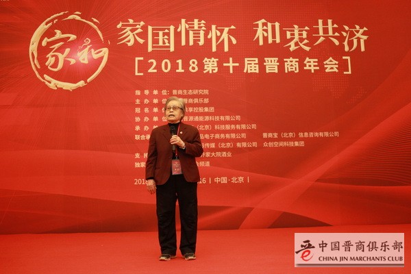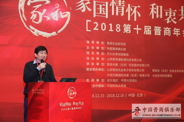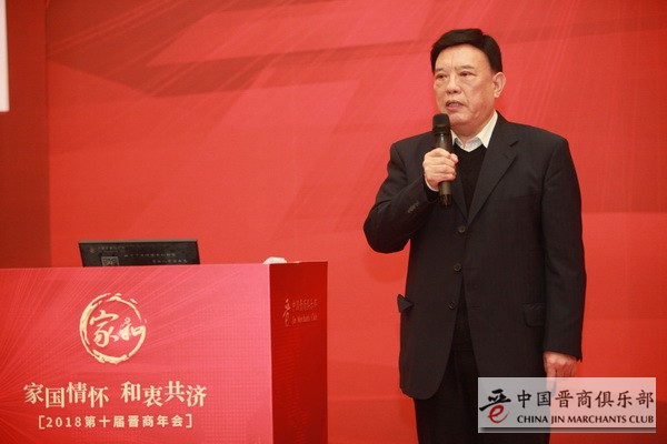 山西省委统战部原副部长、山西省新晋商联合会会长樊盛武现场发表演讲,祝贺2018优秀晋商光荣榜入榜者。