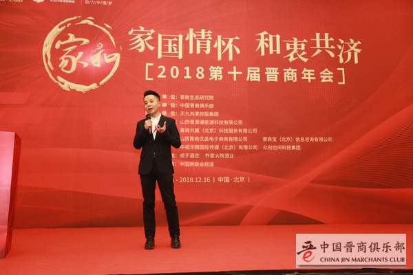 2018年12月16日,“家和·2018第十届晋商年会”在北京市山西大厦隆重召开,三百余名晋商共忆十载聚首京城路,以“家和”凝聚全球晋商之力,继往开来引领新征程,共担时代大任。