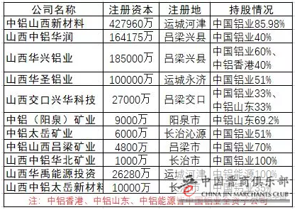 以下为山西资本圈梳理的中国铝业在山西的已有主要“布局”: