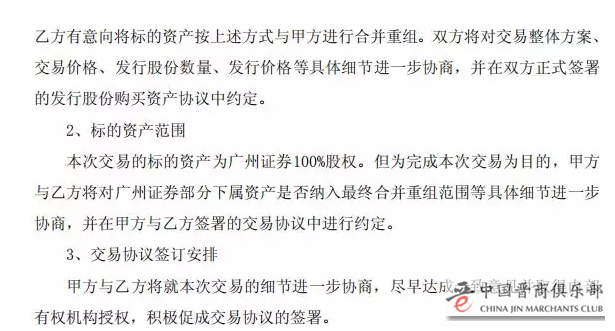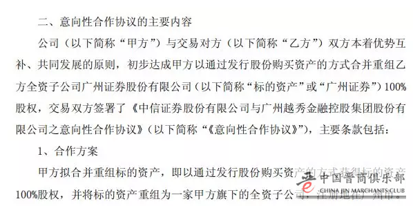 在公告中,中信证券称表示,双方将对交易整体方案、交易价格、发行股份数量、发行价格等具体细节进一步协商,并在正式签署的发行股份购买资产协议中约定。