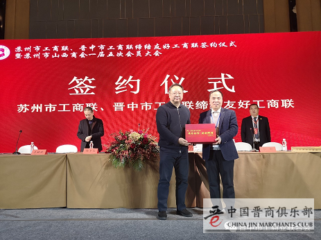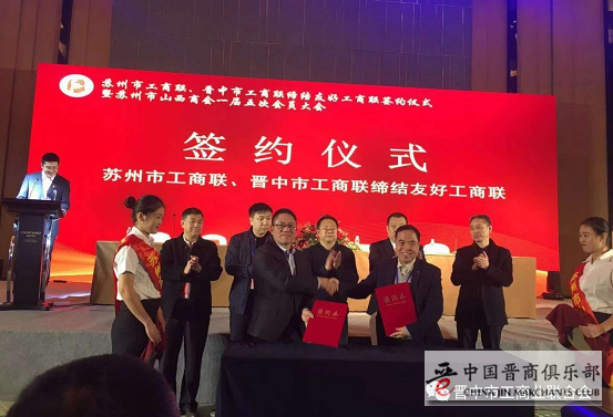 12月30日,晋中市工商联参加苏州市工商联、晋中市工商联缔结友好工商联签约仪式暨苏州市山西商会一届五次会员大会,并与苏州市工商联缔结友好商会。市工商联主席杨子文、市委统战部经济科科长田锦斌,及市投促局等有关部门领导参加会议。
