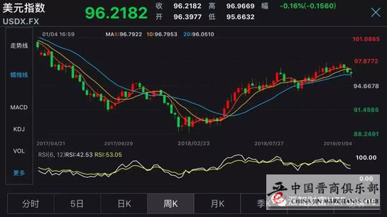 就美元指数看,过去一周剧烈波动,最低至95.66,在新年第一个交易日一度反弹至96.96,此后,在日元暴涨的拖累下,美元指数转跌,周五收盘于96.2183,周微跌0.16%。